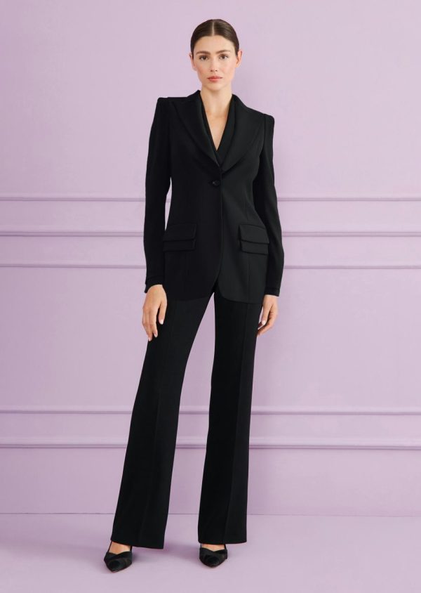 So power-dressing is only something for the office? Nothing of the sort! You’ll never want to take the Rush3 blazer in stretch crepe off. It’s not only thanks to the fine lace details that make this item suitable for cocktails and galas. The double flap pockets and a perfect cut that visibly lengthens your upper body lend you an effortlessly elegant bearing. Whether you combine it with matching pants, killer heels and a clutch for an evening statement look or with casual leather leggings or jeans: Rush3 is epitome of fashionable self-confidence.