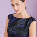 Ready for a glamorous entrance? With this cocktail dress, you’re not just saying Hello, but Here I am! The fit & flare silhouette gives you a dreamy waist, while the knee-length skirt twirls gracefully with you through the night – perfect for those who love a little extra drama. The high boat neckline adds the elegance of a diva, while the sleeveless design perfectly highlights your shoulders. The navy blue jacquard fabric whispers luxury without being over the top – just like you! Whether at a party, event, or simply to make your wardrobe jealous, this dress is always the right choice.