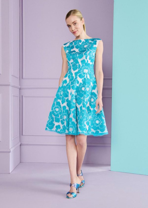 As a wedding guest, you can still say “I do!” – at least when it comes to your spectacular outfit. With this classic cocktail dress, you can look amazing as a wedding guest without stealing the show from the bride. The silhouette is elegant – characterized by the high-fastening bateau neckline and the swirling skirt that loosely skims the knees. The stunning jacquard material impresses with a beautiful floral look. During the ceremony, wear it with an appropriate coat and subtle court shoes, then later for the party you can change into sandals in a radiant contrasting color.