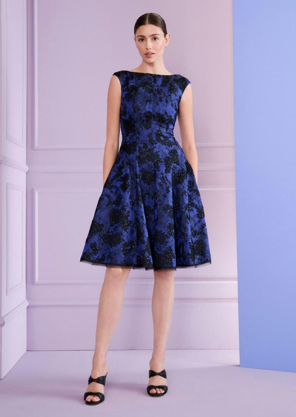 As a wedding guest, you can still say “I do!” – at least when it comes to your spectacular outfit. With this classic cocktail dress, you can look amazing as a wedding guest without stealing the show from the bride. The silhouette is elegant – characterized by the high-fastening bateau neckline and the swirling skirt that loosely skims the knees. The stunning jacquard material has a beautiful sheen. During the ceremony, wear it with an appropriate coat and subtle court shoes, then later for the party you can change into sandals in a radiant contrasting color.