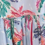 this day dress with its casual and relaxed flair will inspire you. the leightweight fabric, the fresh palmtree print, the wide blousy sleeves and the wider cut are already enough to appeal, and the clever construction of the dress creates a soft volant at the front. deep side pockets add a dash of cool understatement. wear this summer dress with flats during the day in the city, but also with pumps at the next family celebration.