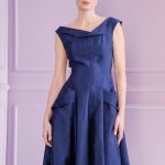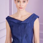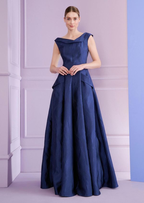 Back to the future – because time travel is now possible! We have managed to bring the glamor of the fifties to the current day. Our new evening dress combines the elegant fifties style with a clean, modern silhouette. The twisted stand-up collar, the narrow waist, and the swirling, flared skirt in a midi length quote the past, while the modern, understated panel cut, and the excitingly beautiful jacquard material translate the look for today. It’s the perfect way to celebrate all those lovely occasions, be it a ball , opera premiere or other beautiful events – as you dance late into the night looking radiantly beautiful!