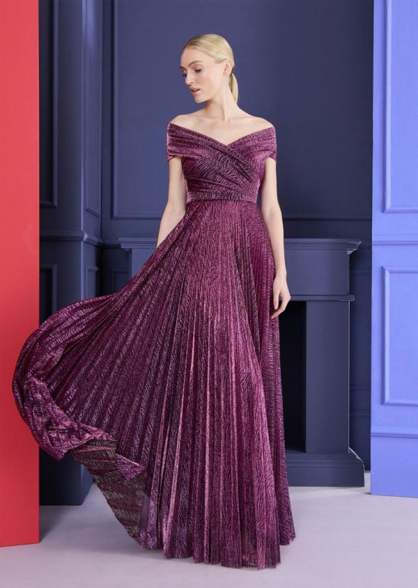 In this evening gown, the red carpet will become your catwalk. We made it out of our feather-light metallic voile. Sophisticated drapes on the top section create the appearance of a slimmer waist. If necessary, you can reveal a little more shoulder, letting you emphasize your collarbone. The floor-length pleated skirt adds a wonderful width and swirls beautifully with every step. Cameras will love you, whether on the next cruise, at a wedding or at a gala dinner!