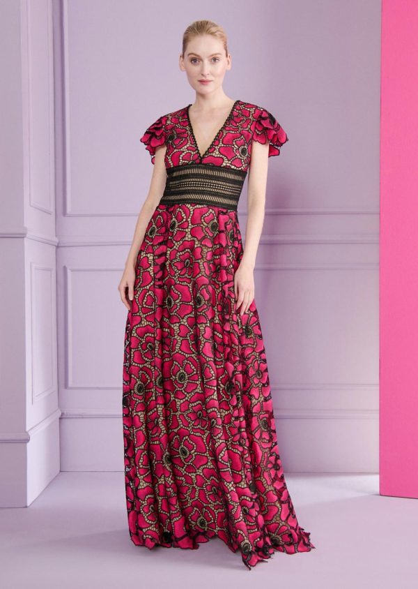 What are you waiting for? Start planning an evening at the ball or a glamorous visit to the opera with your love. This evening gown will let romance fill the air: The cut, featuring a wide skirt and slim waist, accentuates your femininity. The plunging V-neckline shows off your sexy side. Did we mention the fabric? The stunning floral fabric ensures a light look and has a certain dreamy beauty. This boho note will also add an air of casualness to the look. This ensures that you never feel overdressed in this floor-length evening gown so you can enjoy your evening date all the more.