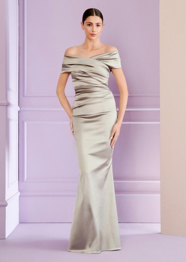 If your calendar is overflowing once again with wonderful events and you’re always out and about, then you need evening gowns that are versatile and easy to restyle. Like this glamorous gown, for instance. The cut has plenty going for it, too. Thanks to the criss-cross drape, this evening gown accentuates your collarbones, while also covering the upper arms with a short sleeve. Intentional draping makes the waist appear slimmer. We made this floor-length gown from wonderfully shiny stretch duchesse satin. You can go crazy and pair it with brightly colored accessories. Alternatively, wear it with a matching stole and delicate gold jewelry for an elegant look or with an exciting choker for a glamorous outfit.