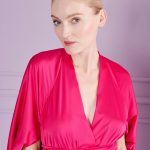 In this evening gown, you will ascend to Mount Olympus and find yourself in the midst of other glamorous goddesses. The accentuated décolleté, beautifully flowing fabric, a sophisticated balloon-cape, refined, figure-flattering draping… all of these elements will make you feel like a seductive Aphrodite. Wear this gown to the next opera festival and you’ll light up the room like Zeus’s master bolt of lightning. Powerfully glamorous and divinely beautiful!