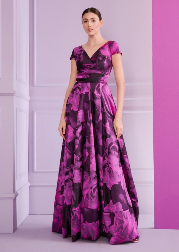 Mission “com-pleated”! We’ve pleated the neckline here to create a wonderfully feminine, sexy look. The elaborate draping is really something to behold. This sophisticated evening gown is guaranteed to be a success. Elegant and super chic, it knows how to impress with a narrow waist and a sweeping, wide skirt. This skirt flows particularly beautifully in the luxurious jacquard fabric. This dress will make an instant impact wherever you go, whether at the Captain’s Dinner on a cruise, a red carpet gala, or a premiere in Bayreuth, Salzburg, and beyond.