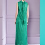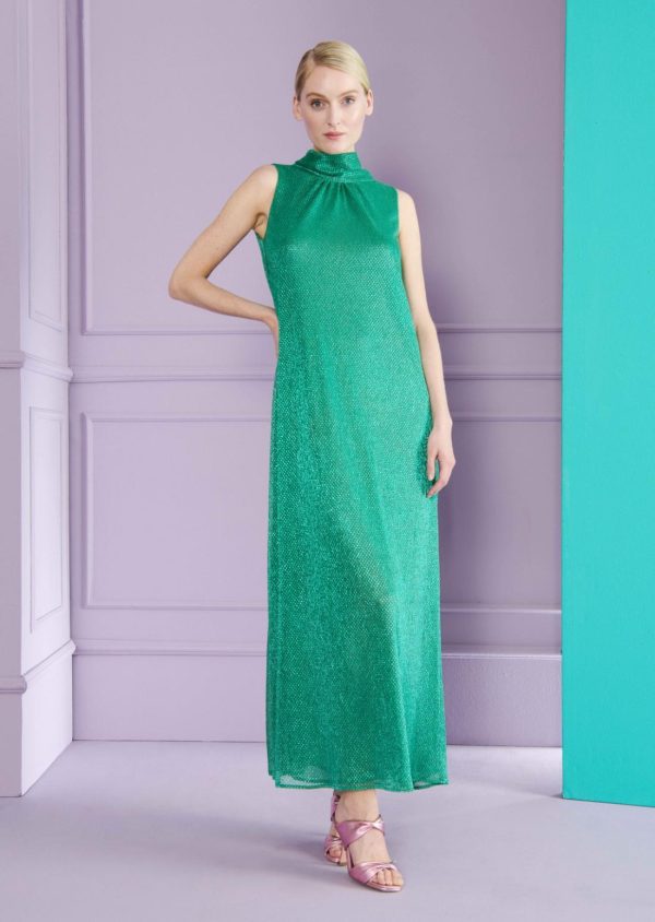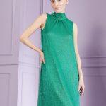 Glamor and comfort don’t have to be mutually exclusive. This modern cocktail dress combines both facets with ease. We have made this midi-length dress in glamorous, glittering, and flowing voile. However, it’s the modern, loose cut with its relaxed width, stand-up collar and pussycat bow at the back that will really get people talking. In this extraordinary look, you are guaranteed to stand out at the next gala and red-carpet event. And even if the evening lasts a little longer, the comfortable cut will keep you looking beautiful into the wee hours of the morning.