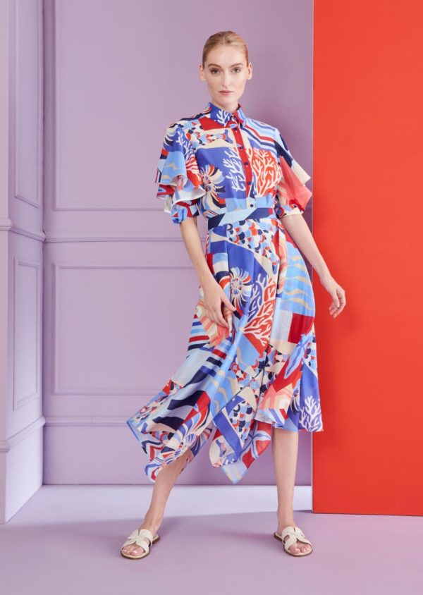 You’ll be able to take on any fashion icon in our new skirt and make a bold and stylish statement. The asymmetric hem is extravagant yet playful, and the combination of the printed cotton fabric and silk voile gives it a wonderfully light feel. Style it with lightweight cashmere knitwear or simply a basic t-shirt. Or add a casual denim jacket for a sporty, cool look.