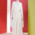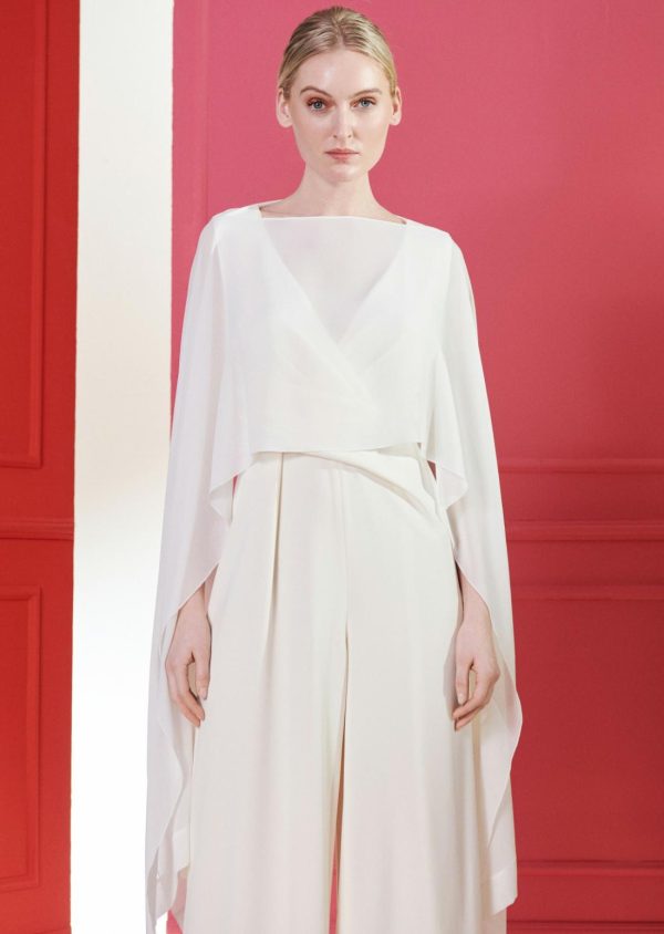 One single shawl and yet so many possibilities. On those cooler evenings or rather as a discreet protection against too much bare skin, Cia1 is the perfect companion. Our new shawl can be worn in a number of various ways thanks to the cut. Simply slip your head through and lay the soft georgette crepe gently over your shoulder. Or why not get creative with it! Throw the side shawls over one another, tie them in a knot at your side, toward the front, or behind you and this way you’ll be able to conjure up an exciting transparent top. Especially in combination with a sleek, chic evening gown you’ll continue to be able to create new and exciting looks!