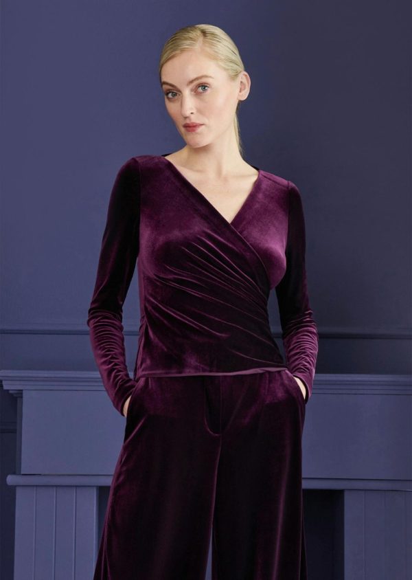 with our top, it’s almost as if the fashion fairy granted all your wishes all at once. this top made of super soft velvet which stretch in both direction gives you an unbelievable freedom of movement and comfort. short sleeves, beautiful neckline, figure flattering drapes at the waist and as easy to wear as a t-shirt. wear it with jeans for a casual look, under your favorite suit to the office and with a dramatic statement skirt to a concert or a cocktail. your options are limitless.